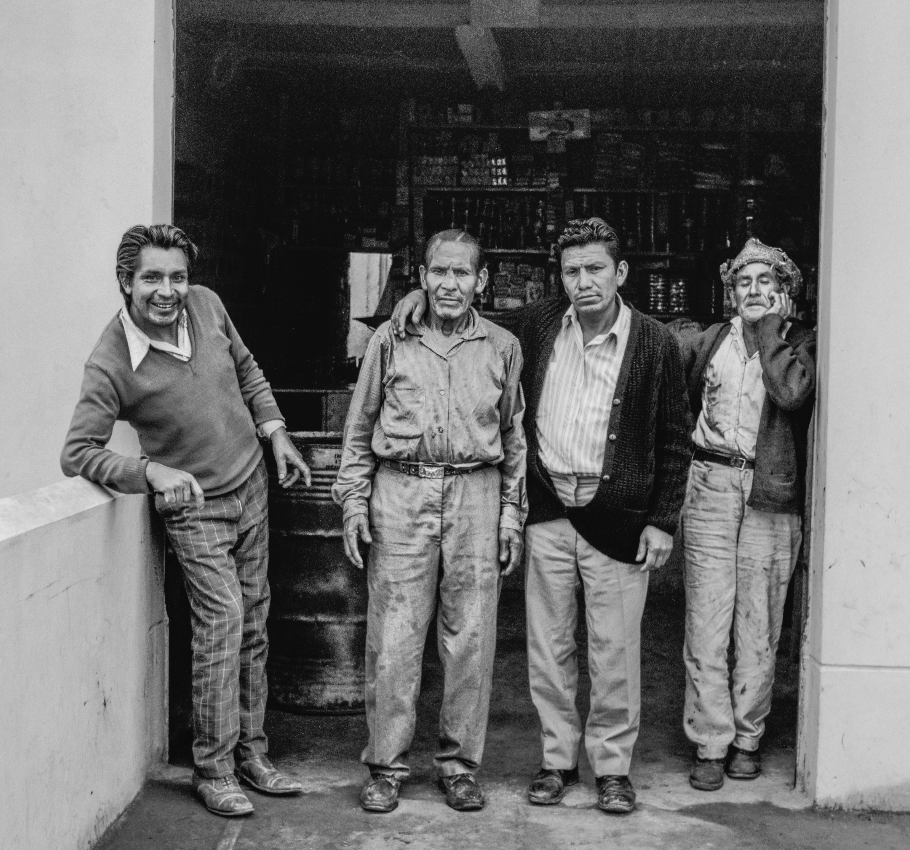 Hombres en la puerta de una bodega